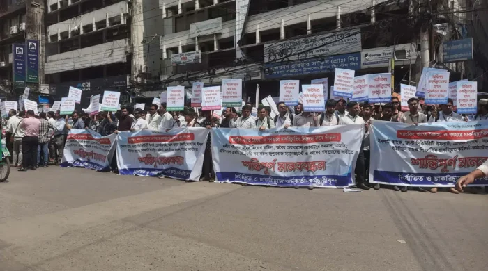 অন্তর্বর্তীকালীন সরকারের সময়ে ইসলামী ধারার ছয়টি ব্যাংকের কয়েক হাজার কর্মকর্তা-কর্মচারীদের চাকরি ফিরিয়ে দেওয়ার দাবিতে মানববন্ধন অনুষ্ঠিত হয়েছে। রোববার (১৯ এপ্রিল) বেলা ১১টায় রাজধানীর দিলকুশায় ইসলামী ব্যাংক বাংলাদেশ পিএলসির সামনে এ read more